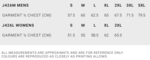 | Body Width (cm) | 57 | 60 | 63 | 66 | 69 | 72 |